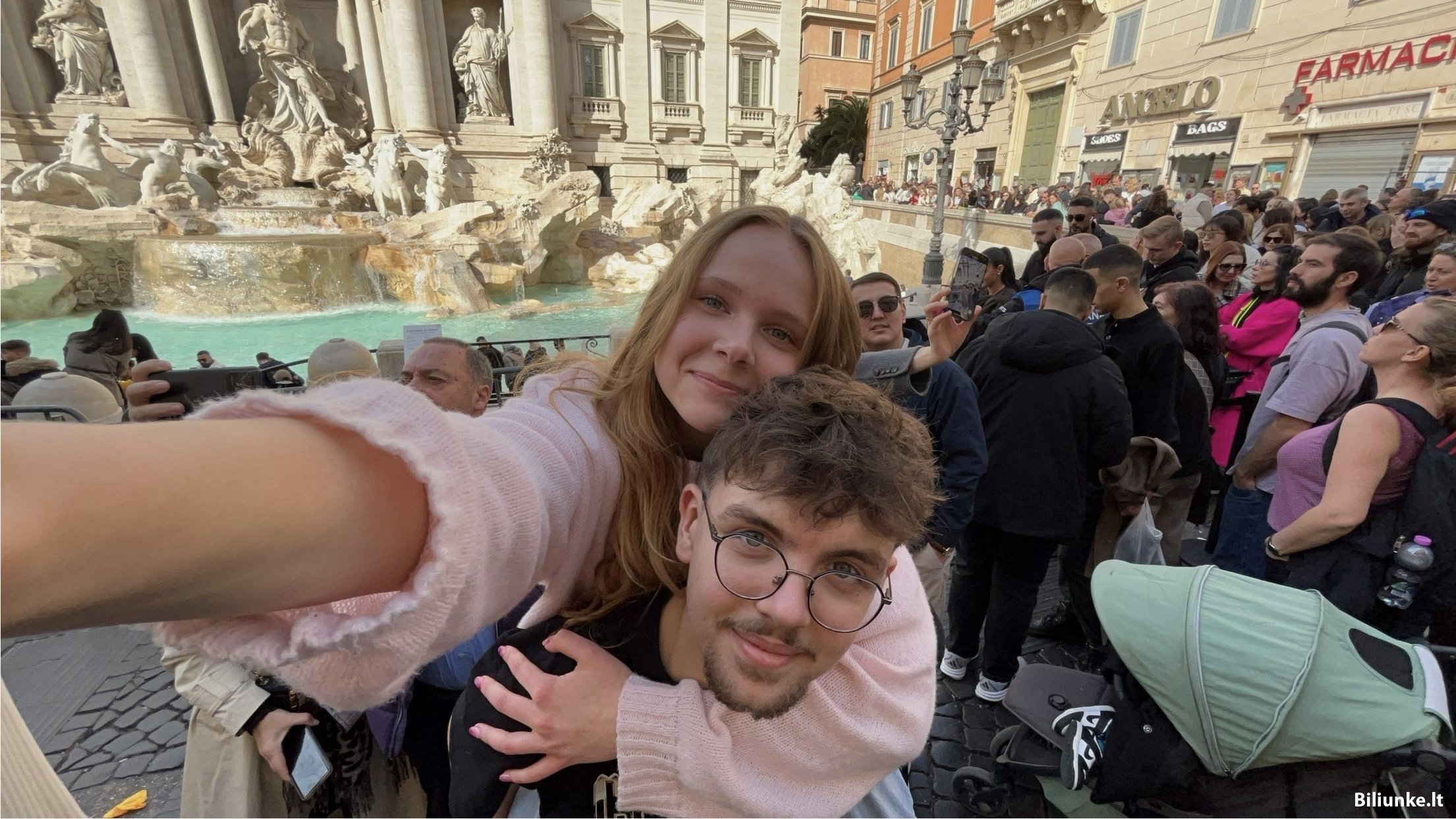- Mane labiausiai žavi Italija. Ten būdama visiškai pasinėriau į kitą pasaulį - pamiršau mokyklą ir visas nuolat galvoje besisukančias mintis. Romoje kiekvienas žingsnis atrodo lyg kelionė laiku. Įspūdinga pastatų architektūra ir miesto istorija atrodo lyg nukėlė mane į tuos laikus, apie kuriuos iki šiol matydavau tik vadovėliuose. Vaikščiojant jaučiau kepamų picų kvapą, norėjosi užeiti į visas kavinukes. Žmonių labai daug, kas man nepatinka, bet smalsumas ir Romos grožis man nuslopino visą žmonių masę. O vakarais Roma tampa dar įspūdingesnė - apšviesti pastatai ir gatvelės šiltomis spalvomis miestui suteikia jaukumo ir šilumos. Vakare einant gatvelėmis pastebėjau, kad net žmonių daugėja, vis daugiau girdisi žmonių juokas ir pokalbiai, muzika groja ant kiekvieno kampo ir norisi lyg šokti ir tiesiog džiaugtis gyvenimu. Naktinėje Romoje dar neteko vaikščioti, bet net neabejoju, kad dar sugrįšiu ir pažinsiu ją kiekvienu paros metu. Jei galvojat keliauti po Romą, siūlyčiau nusiteikti labai daug vaikščioti, bet nuovargį pajusit tik prieš miegą, nes įspūdžiai nerealūs! Taip pat buvau Florencijos mieste. Šis miestas palyginus su Roma toks kuklus ir kitoks, bet tikrai paliko įspūdį. Florencija man asocijuojasi su lietumi, nes kai buvau ten, visas dienas lietus lijo ir buvo apsiniaukę, bet tai nesutrukdė pažinti miesto. Užlipus į kalną, kur yra Mikelandželo aikštė, atsiveria pasakiškas miesto vaizdas. Manau, galėčiau pasakot ir pasakot, bet pasakysiu tiek, kad tikrai į Italiją dar ne kartą sugrįšiu ir ne vien į šiuos miestus, bet noriu aplankyti ir kitus. Tiesą pasakius, būdama Italijoje jaučiausi lyg sapne.